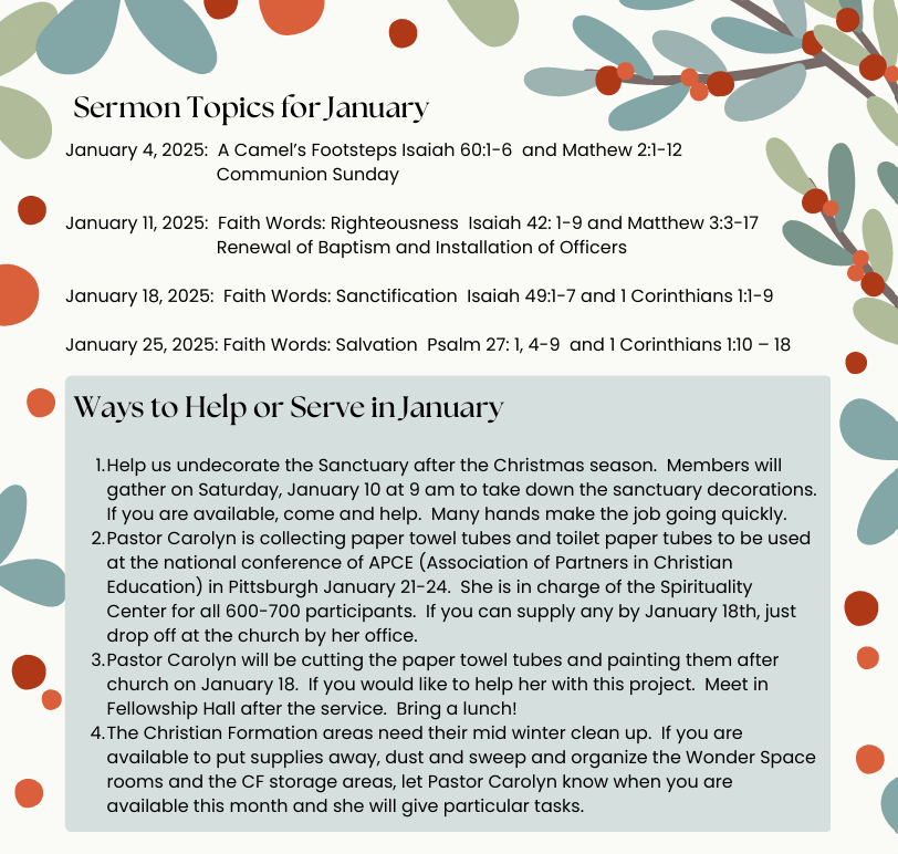 January 2026 Plum Creek Presbyterian ChurchJanuary 1, 2026 Facebook0 Twitter LinkedIn0 Reddit Tumblr Pinterest0 0 Likes